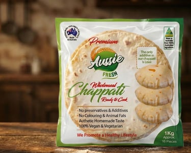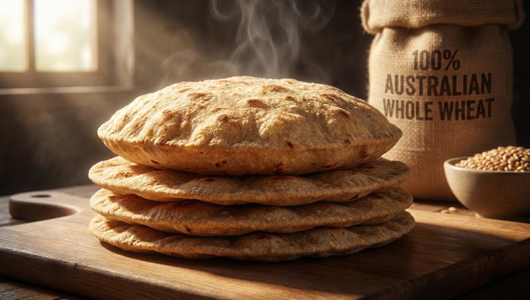 Soft, high-fiber chapatis made from 100% Australian whole wheat.